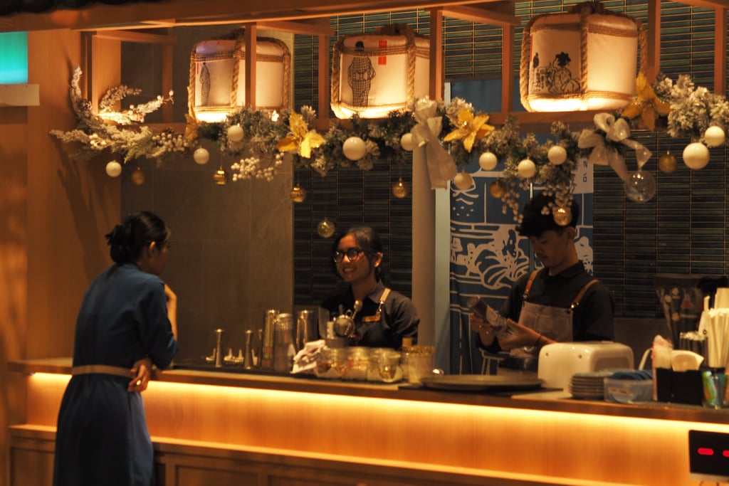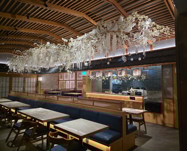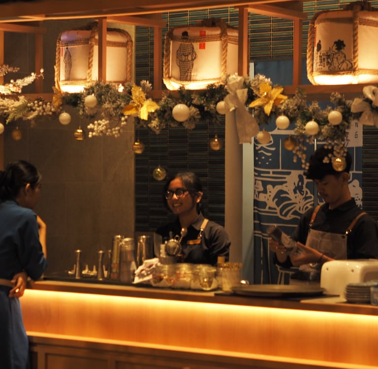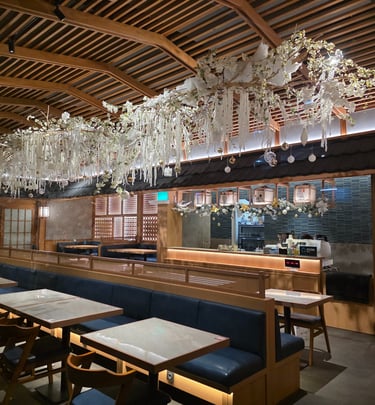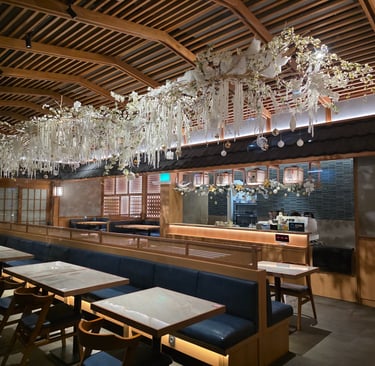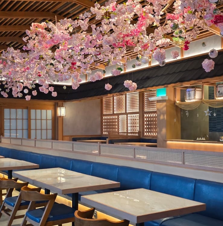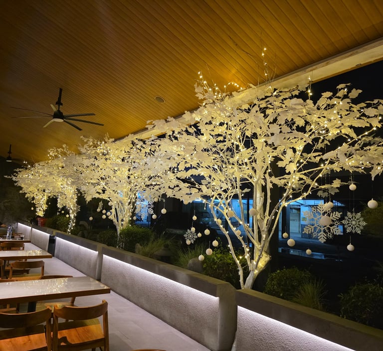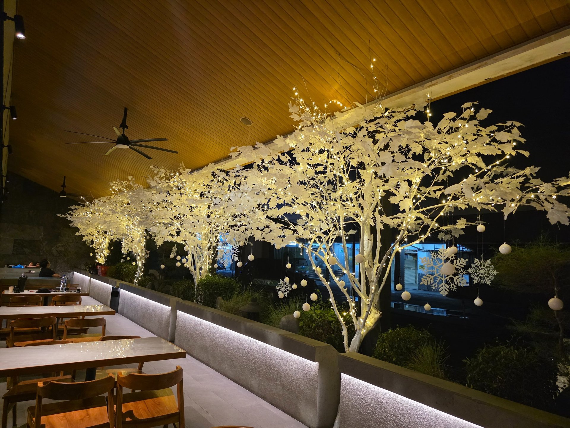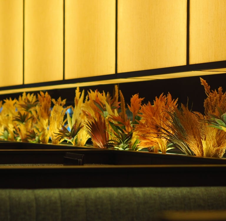 Tanaman artifisial premium menghiasi sudut restoran, menciptakan suasana nyaman dan segar tanpa perawatan rumit.