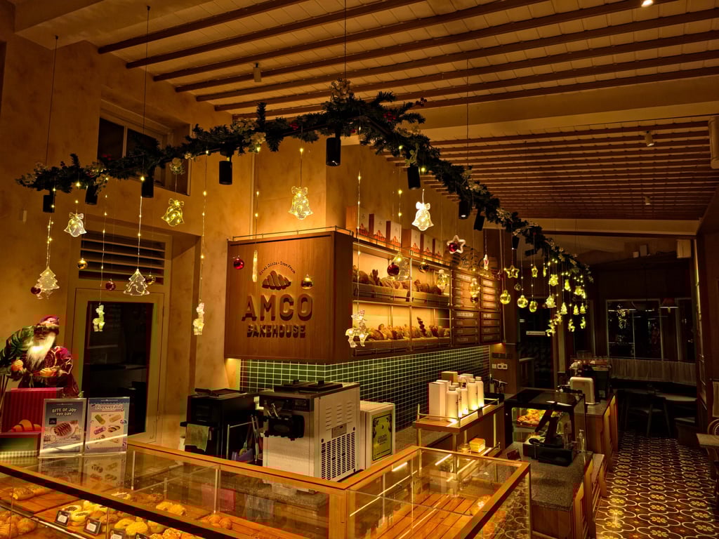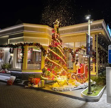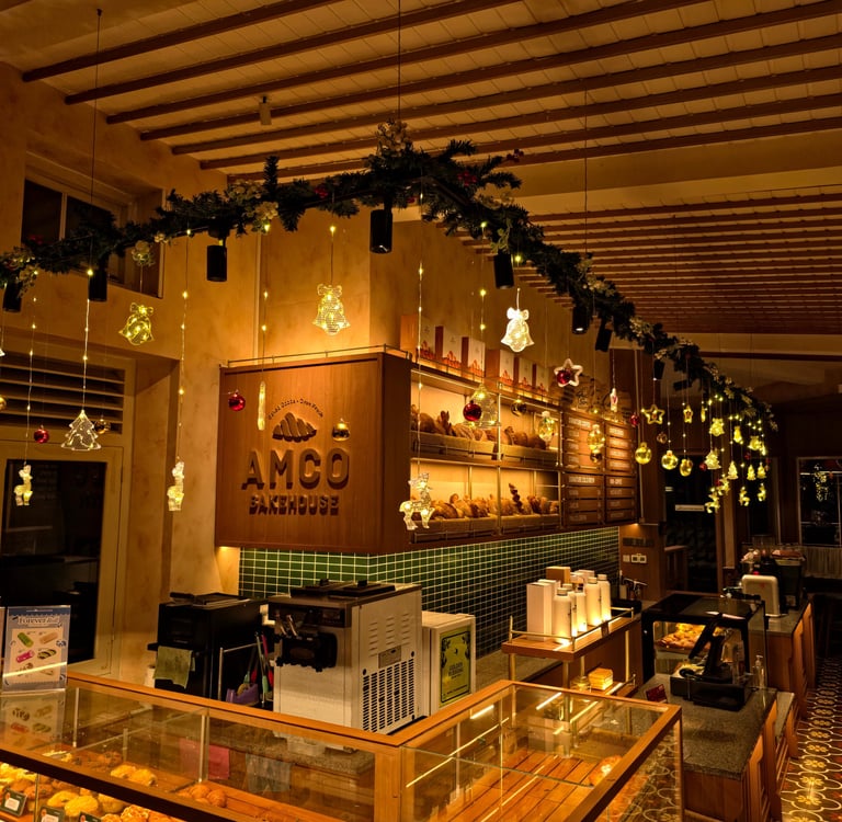 Dekorasi cafe cozy dengan tanaman artifisial menghadirkan kesan mewah dan natural yang menyambut setiap tamu.